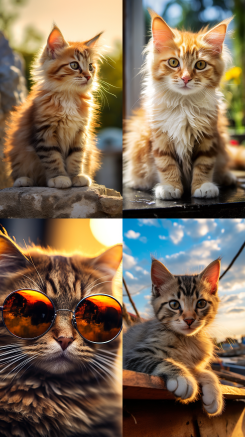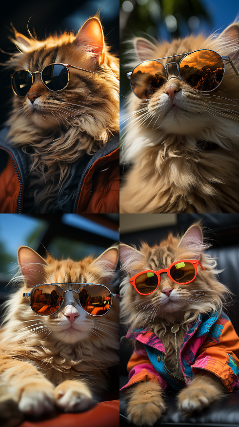 Midjourney Bot 更新时间:2023-08-31 02:34Cute and cool cat wearing sunglasses,HDR,UHD,16K --c 33 --ar 9:16 --style raw --v 5.2 --s 750