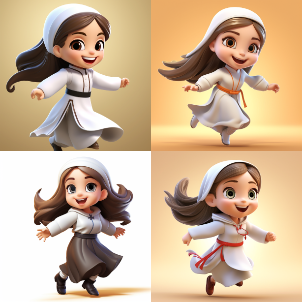 Midjourney Bot 更新时间:2023-08-31 00:54Super cute girl , a nun,,Necklace, runs, Multiple colors, and expressive facial expressions, with long hair, energy, puppy, Radiating happiness, curvature, and chart, full body photos, clean background, The character is designed in Bubble Matte and Pixar styles, using materials such as clay and rubber, harmonic color tones,,3D, CAD, image quality, 32K --ar 1:1 --style raw --v 5.2