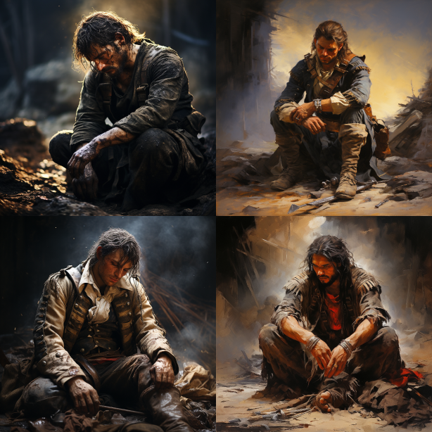 Midjourney Bot 更新时间:2023-08-30 22:51On a battlefield, a warrior lies drunk on the ground, surrounded by the smoke of gunpowder and the sound of war drums. This warrior carries the weight of the hardships and pain endured through countless battles, yet he remains resolute in his determination. By his side, several comrades rest, having also experienced numerous campaigns together, fighting for their beliefs and honor. This is a brutal war, yet the battlefield is filled with beauty and grandeur. Dazzling projectiles dance in the sky, casting a colorful backdrop over the entire battlefield. Sunlight filters through gentle smoke, giving the scene a mysterious hue. The soldiers' armor gleams with the metallic shine, displaying their courage and resilience. Pablo Picasso's artistic style is reflected in this scene, with every detail presenting characteristics of surrealism. The warriors' bodies are elongated and distorted, forming exaggerated poses that symbolize their inner strength and resilience. The sand dunes in the background are geometrically treated, creating a unique and peculiar visual effect. The artwork utilizes Octane rendering technology, enhancing the realism of the battlefield through meticulous lighting effects and shadows. The lifelike flames and explosive effects bring the entire battlefield to life, allowing viewers to feel the tension and danger within. This piece showcases the brave warriors in history who made immense sacrifices during war, yet their spirit and willpower will never fade away. No matter how cruel the war may be, they will steadfastly stand on the battlefield, fighting for their beliefs and homeland. This is a profound and impactful work of art that allows us to truly experience the weight of history and the greatness of humanity through the artist's eyes. --ar 1:1 [...]