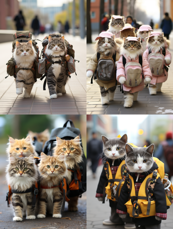Midjourney Bot 更新时间:2023-08-30 23:12Cats carrying backpacks to school --ar 3:4 --style raw --v 5.2 --s 250