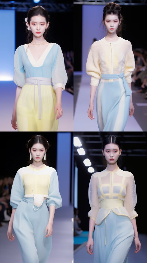 Midjourney Bot 更新时间:2023-08-30 23:09Chinese style, runway show, fashion week, Korean girl, exquisite face, wearing wool dress, woven, hollowed out, light yellow and white stitching, plump lips, bright makeup, natural volume, and delicate skin texture. --s 32 --c 3 --iw 1.5 --ar 9:16 --style raw --v 5.2