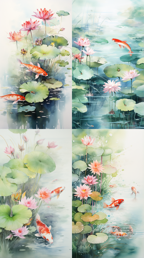 Midjourney Bot 更新时间:2023-08-30 22:51The lotus pond is surrounded by carp swimming, surrounded by weeping willows, featuring authentic, high-definition, flowing watercolor strokes in traditional Chinese style, soft ink colors, harmonious and natural, and exquisite ripples on the water surface --ar 9:16 --style raw --v 5.2