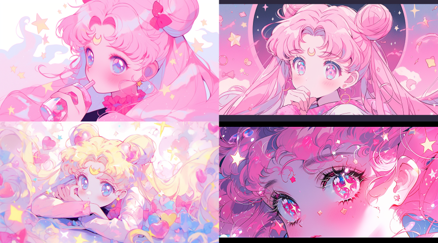 Midjourney Bot 更新时间:2023-08-30 22:46the picture is done in pink, in the style of sailor moon manga style, blink-and-you-miss-it detail,kawaii aesthetic, high-keyed palette, little star,precisionist art ,Dream colors,low saturation --ar 128:71 --niji 5