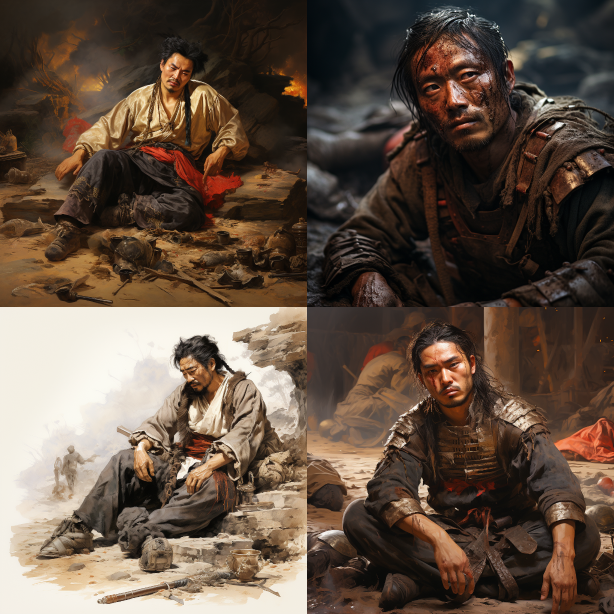 Midjourney Bot 更新时间:2023-08-30 22:53On a battlefield, a soldier from the Song Dynasty lies drunk on the ground, surrounded by the smoke of gunpowder and the sound of war drums. This warrior carries the weight of the hardships and pain endured through countless battles, yet he remains resolute in his determination. By his side, several comrades are also taking a break, having experienced numerous campaigns together, fighting for their beliefs and honor. This is a brutal war, yet this battlefield is filled with beauty and grandeur. Dazzling projectiles dance in the sky, casting a colorful backdrop over the entire battlefield. Sunlight filters through the gentle smoke, giving the battlefield a mysterious hue. The soldiers' armor gleams with the metallic sheen, displaying their courage and indomitable spirit. Pablo Picasso's artistic style is reflected in this scene, with every detail presenting characteristics of surrealism. The soldiers' bodies are elongated and distorted, forming exaggerated poses that symbolize their inner strength and resilience. The sand dunes in the background are geometrically treated, creating a unique and strange visual effect. Octane rendering technology is used in the image, enhancing the realism of the battlefield through meticulous lighting effects and shadows. The lifelike flames and explosive effects bring the entire battlefield to life, allowing viewers to feel the tension and danger within. This artwork showcases the brave warriors in history who made immense sacrifices in war, yet their spirit and willpower will never fade away. No matter how cruel the war may be, they will steadfastly stand on the battlefield, fighting for their beliefs and homeland. This is a profound and impactful piece of art that allows us to more vividly experience the vicissitudes of history [...]