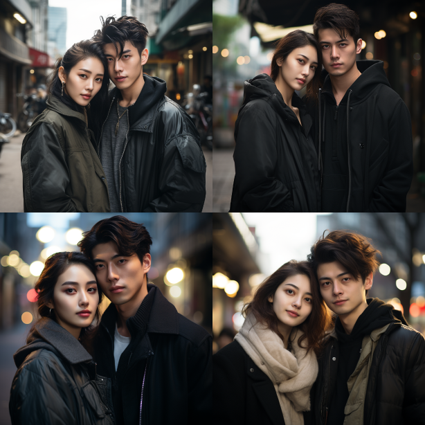 Midjourney Bot 更新时间:2023-08-30 22:03Chinese couple, street style, handsome boy and beautiful girl, Chinese street view in 2020. Delicate skin texture, full lips, heavy bright makeup, natural volumetric. UHD, 16K, photorealistic, documentary photography, cinematic style, hyper realistic. Fujichrome Provia 100F. --ar 1:1 --style raw --v 5.2 --s 250