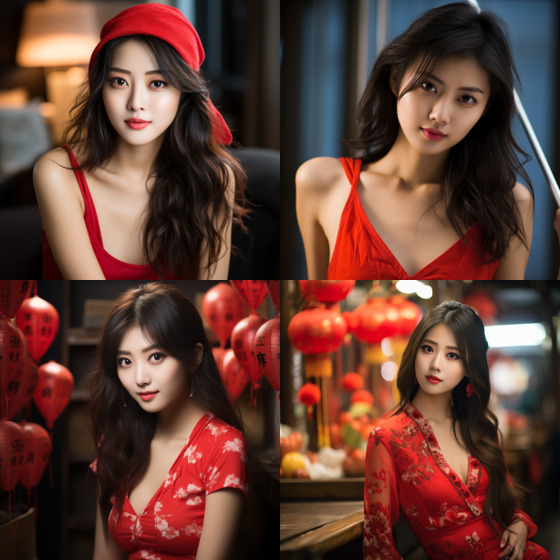 Midjourney Bot 更新时间:2023-08-30 21:17Chinese beauty, bright red underwear --ar 1:1 --style raw --v 5.2 --s 250