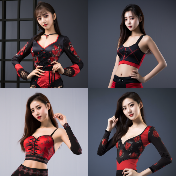 Midjourney Bot 更新时间:2023-08-30 21:18Chinese beauty, red and black underwear --ar 1:1 --style raw --v 5.2