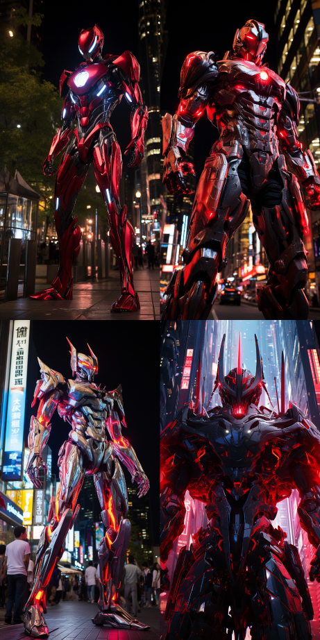 Midjourney Bot 更新时间:2023-08-30 21:11In a future world shimmering with red neon lights, a huge and powerful mecha stands tall in the center of the city. Its body is made of sturdy steel, emitting a smooth and shiny red metallic texture. The design of the mecha is extremely exquisite, combining power and elegance, as if it were a piece of art. The entire body is covered with complex details and patterns, forming a texture rich in geometric beauty. Its arms are raised high, as if ready to launch powerful energy weapons at any time. The eyes of the mecha shine with a deep red light, revealing an unparalleled intelligence and coldness. Its footsteps are steady and powerful, and every action brings tremors to the ground, as if to change the order of the entire world.,high resolution,octane rendering,16K,UHD,Chinese phoenix,Chinese opera mask --s 212 --c 25 --ar 1:2 --style raw --v 5.2