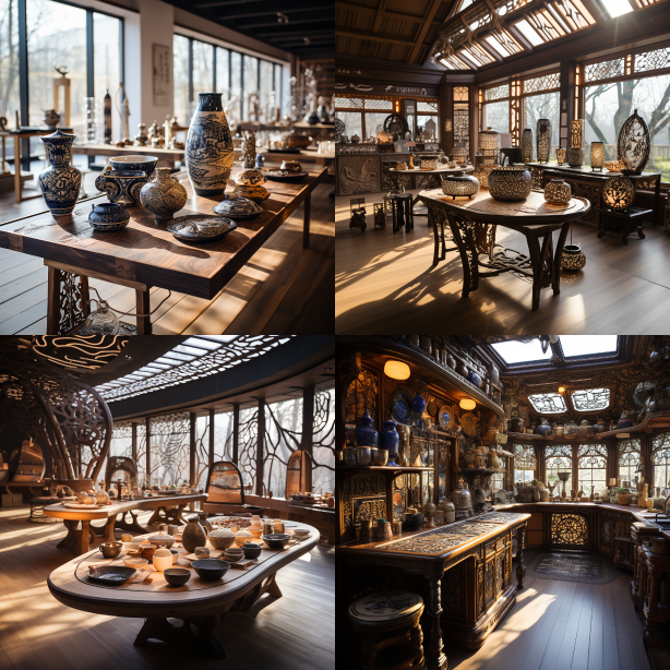 Midjourney Bot 更新时间:2023-08-30 21:12Inside the cabin, experience the Silk Road, various porcelain, and artistic installations --ar 1:1 --style raw --v 5.2 --s 750