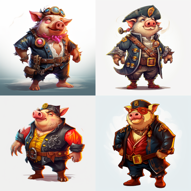 Midjourney Bot 更新时间:2023-08-30 14:47Pirate, full body, pig, cool, mighty, colorful. --ar 1:1 --style raw --v 5.2