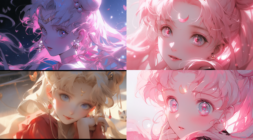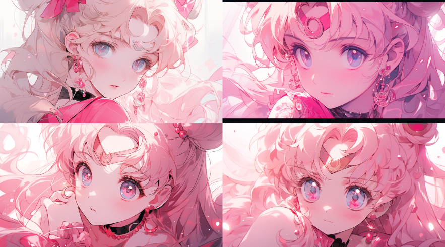Midjourney Bot 更新时间:2023-08-30 12:30the picture is done in pink, in the style of sailor moon manga style, blink-and-you-miss-it detail, monochromatic depth, close-up, kawaii aesthetic, high-keyed palette, precisionist art --ar 128:71 --niji 5 --s 250