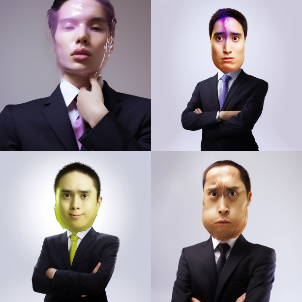 Midjourney Bot 更新时间:2023-08-30 12:48blob:https://www.gogpt.vip/21f21d40-dc1e-4efe-9b84-751686d84da0, keep the face 99%, wearing a black suit professional male. --ar 1:1 --v 5.2 --style raw