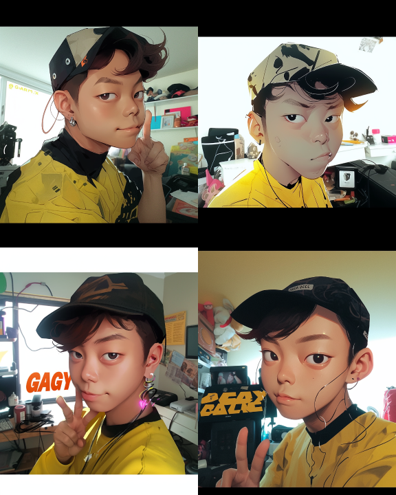 Midjourney Bot 更新时间:2023-08-30 12:36A little boy in yellow, wearing a peaked cap, sporty style, by mr becca doodlefly, grunge beauty style, sandara tang, mixed pattern, text and emoji device, closeup, charging character illustration, folklore --s 180 --ar 4:5 --style expressive --niji 5