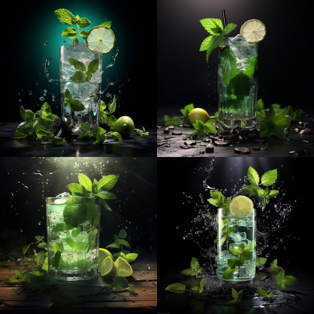 Midjourney Bot 更新时间:2023-08-30 12:33On the black gray table, there is a transparent cocktail with mint leaves scattered around the glass. The simple black gray background features a surreal fantasy style, charming character illustrations, vray rendering, rich and immersive nature, and excellent atmosphere. --ar 1:1 --style raw --v 5.2