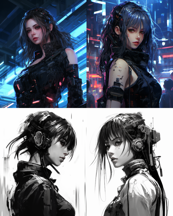 Midjourney Bot 更新时间:2023-08-30 12:15Cyberpunk girl android writing code, neo tokyo, sketch, gauge --ar 4:5 --style raw --v 5.2
