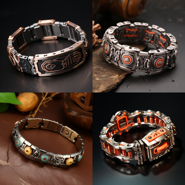 Midjourney Bot 更新时间:2023-08-30 12:17Metal bracelet, TNT, welding, remote control, decorative --ar 1:1 --style raw --v 5.2