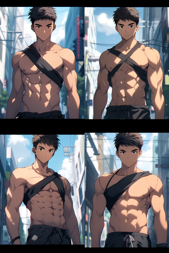 Midjourney Bot 更新时间:2023-08-30 12:10Frontal view,medium full shot,a 25 years old young handsome male,crew cut,perfect face,trim physique,athletic build,pectorals and abdominals,topless,no shirts,without shirts,none shirts,putting both hands by sides,bright day,city background,Makoto Shinkai,in the style of 2D Japanese Anime,beautiful cinematic lighting,Official Art,Pixiv Fanbox,Digital Art,Epic Portraiture,Ultra Detailed,32K Resolution,Vibrant Colors,Vivid Colors,Bright Colors,Masterpiece,Best Quality,Post Processing,image denoising. --ar 2:3 --style original --niji 5 --iw 2