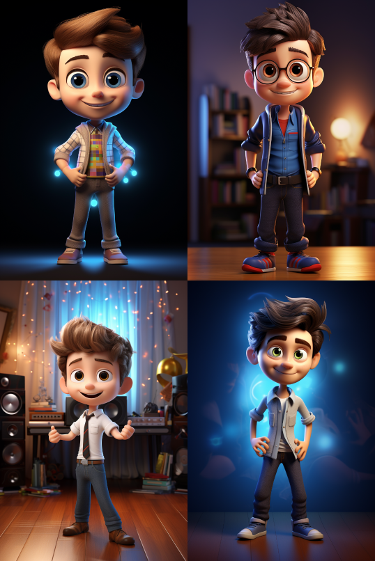 Midjourney Bot 更新时间:2023-08-30 12:12Handsome Pixar-style 3D character, wearing a stylish and handsome shirt, with a pair of happy big eyes, very cute and handsome. The whole body and legs have dynamic body postures and gestures. In a room with music equipment, the lighting is super detailed, beautiful composition, rich and bright colors, and three-dimensional soft lighting. Inspired by Alice in Wonderland, magic, and fairy tales. Unreal Engine, octane rendering, cute rendering, 3D rendering, Adobe Photoshop, awe-inspiring, beautiful, cute. --ar 2:3 --style raw --v 5.2