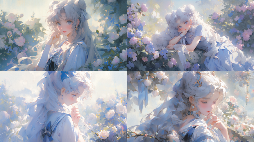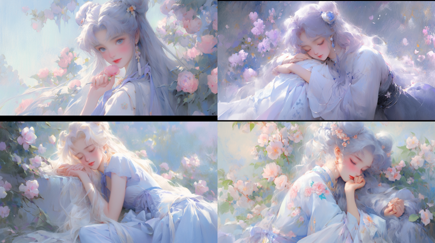 Midjourney Bot 更新时间:2023-08-30 12:00Sailor Moon wearing blue Hanfu,take cherry fruit,cute face, upper body, sitting, front, oil painting texture, Pastel: 2, Dream colors, Lavender tones ,Sailor Moon,sky Blue color,garden background ,Peony ,full lipsheavy bright makeupnatural volumetric,delicate skin texture --ar 16:9 --niji 5 --s 750