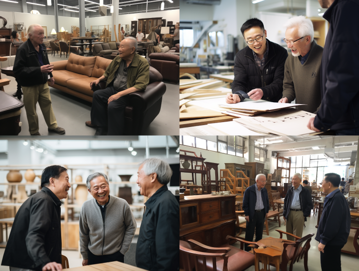Midjourney Bot 更新时间:2023-08-30 12:04White old men and Asians come to visit and discuss furniture design studios --s 72 --c 5 --ar 4:3 --style raw --v 5.2