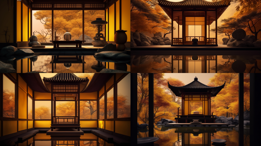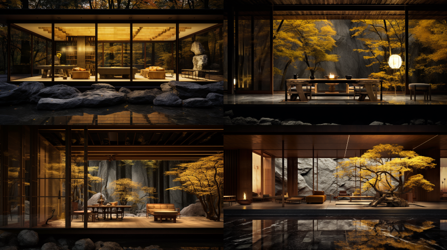 Midjourney Bot 更新时间:2023-08-30 11:40Zen space, tea house, aman style, Japanese Style, dark yellow and light amber, marble and wood, architecture details, beautiful glow, archday, architecture digest, details, 16k, ultra realistic photography-v4-ar 16:9 --ar 16:9 --v 5.0