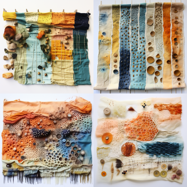 Midjourney Bot 更新时间:2023-08-30 11:33Fabric college with different materials, mold watercolor, small beans, visual art, texture, composite materials --ar 1:1 --style raw --v 5.2