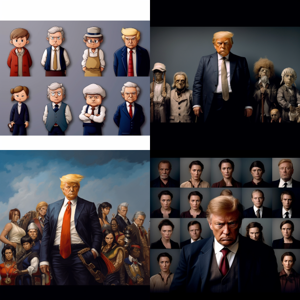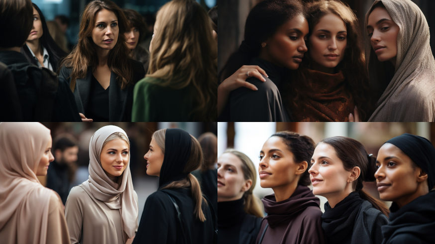 Midjourney Bot 更新时间:2023-08-30 11:36Three women looked at a woman behind them together. --ar 16:9 --style raw --v 5.2