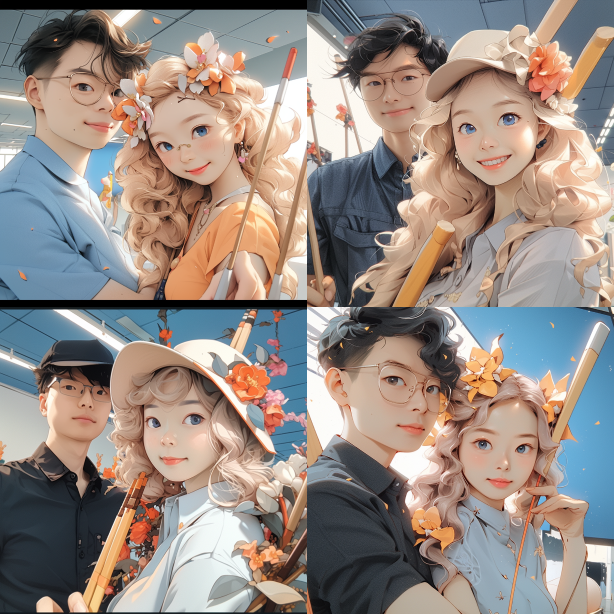 Midjourney Bot 更新时间:2023-08-30 11:43i like anime characters very much, in the style of lively illustrations, joyful and optimistic, light yellow and sky-blue, nicolas mignard, romantic emotivity, close-up, youthful protagonists. --ar 1:1 --niji 5 --s 750