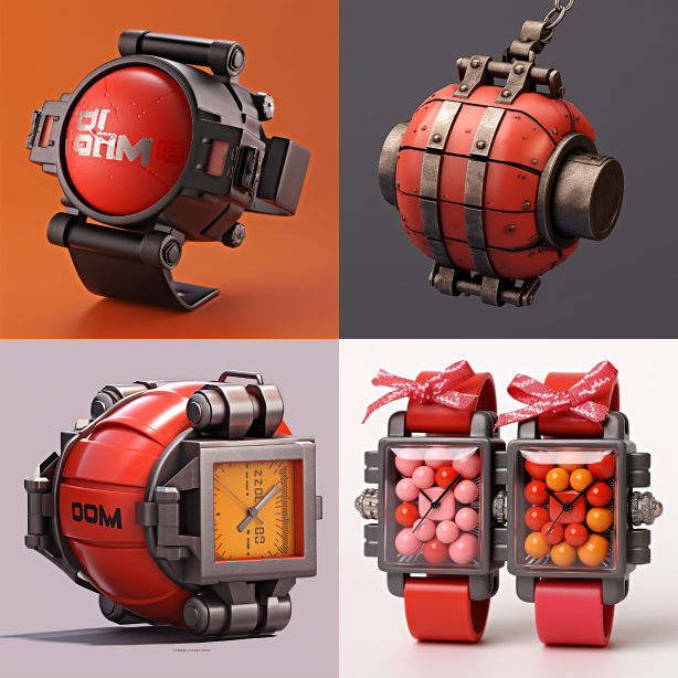 Midjourney Bot 更新时间:2023-08-30 11:36A watch shaped bomb that can be remotely controlled and has a mechanical texture --ar 1:1 --style raw --v 5.2