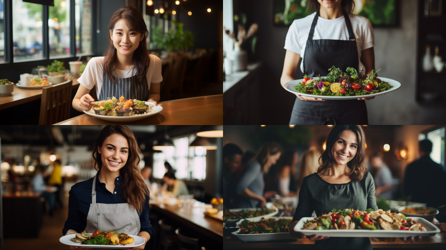 Midjourney Bot 更新时间:2023-08-30 11:29Woman stock by the table, displaying a good dish --ar 16:9 --style raw --v 5.2