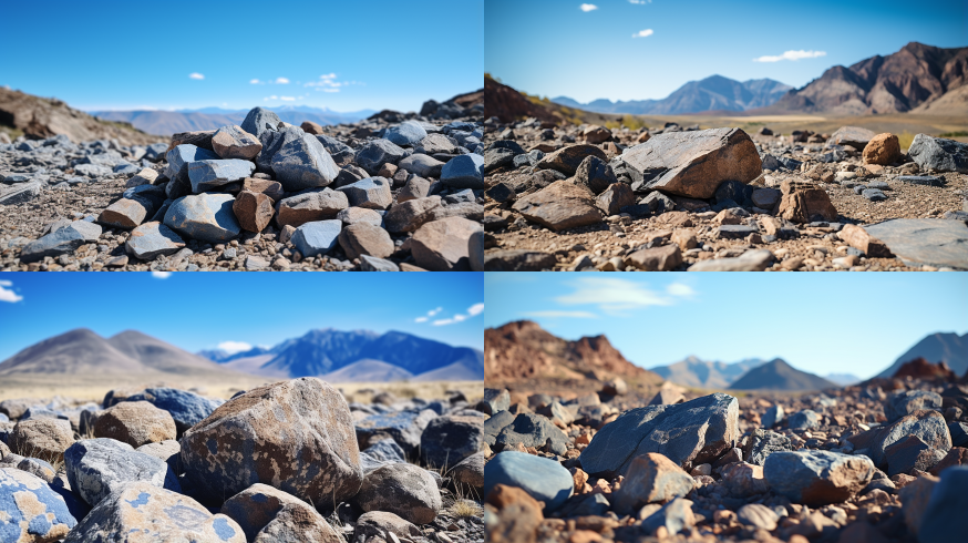 Midjourney Bot 更新时间:2023-08-30 11:32Outdoor close-up photo of rocks, blue sky, mountains in the distance, dark-colored rocks, close-up shot, realistic style photography. --ar 16:9 --v 5.2 --style raw