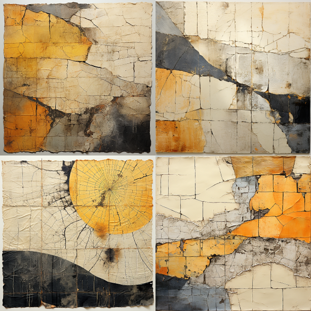 Midjourney Bot 更新时间:2023-08-30 11:30Collage, northern dryness, cracks, sandstorms, loess, dusty, visual art, manuscript, cubism, texture, pigments, composite materials, adhesive tape collage, fish scales. --ar 1:1 --style raw --v 5.2 --s 250