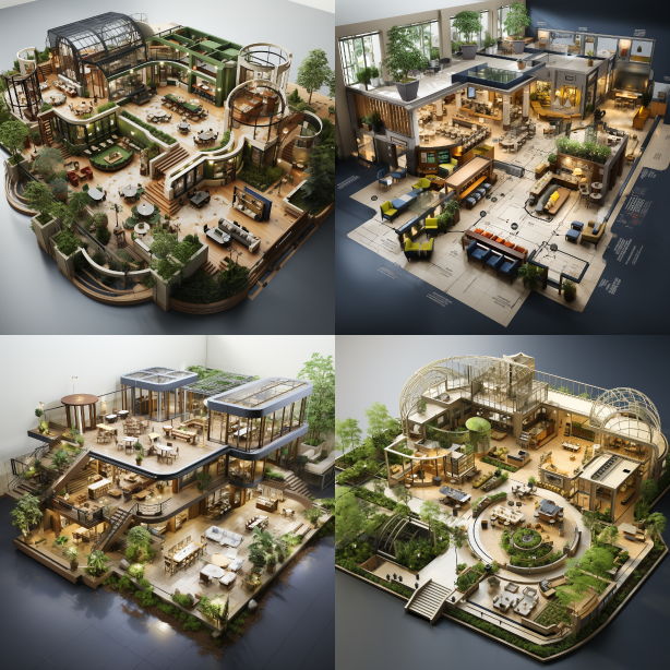 Midjourney Bot 更新时间:2023-08-30 11:31Catering space, floor plan, fast food restaurant, green, environmentally friendly --ar 1:1 --style raw --v 5.2 --s 750