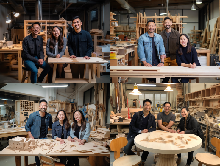 Midjourney Bot 更新时间:2023-08-30 10:44In furniture design studio, a team take a group photo. On the left is a male Asian, in the middle is a male white , and on the right is a female white. In the middle shot, all three of them look at the camera with smiles. --no Grass --ar 4:3 --style raw --v 5.1 --s 250