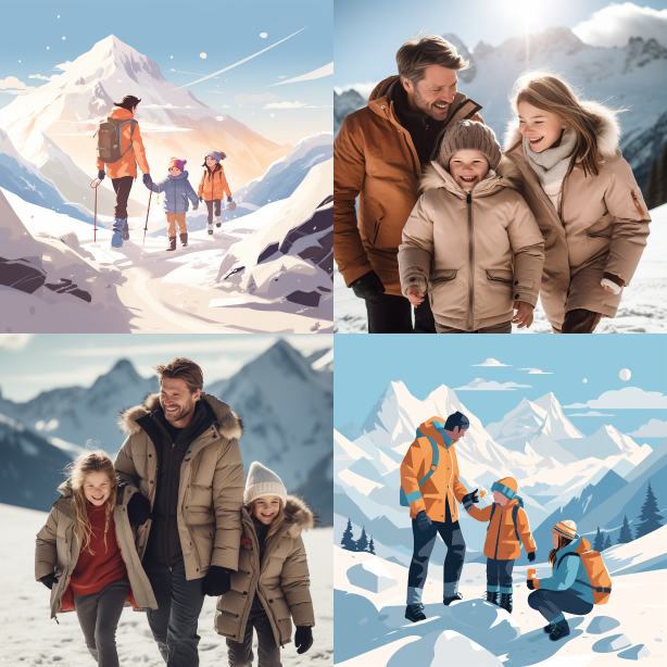 Midjourney Bot 更新时间:2023-08-30 10:23A family playing in the snow-covered mountains, dressed in down jackets. The scene is elegant and simple. --ar 1:1 --style raw --v 5.2