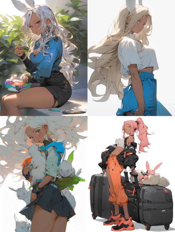 Midjourney Bot 更新时间:2023-08-30 10:24Girl, long hair, moving style, prunen south, portable rabbit, princess skirt --s 423 --c 4 --ar 3:4 --style expressive --niji 5