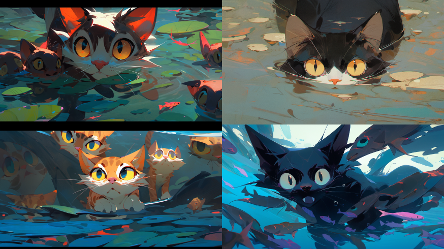 Midjourney Bot 更新时间:2023-08-30 10:25: cut cat swimming underwater, sliming, bright eyes, portal, dream, a bright color --s 750 --ar 16:9 --style expressive --niji 5