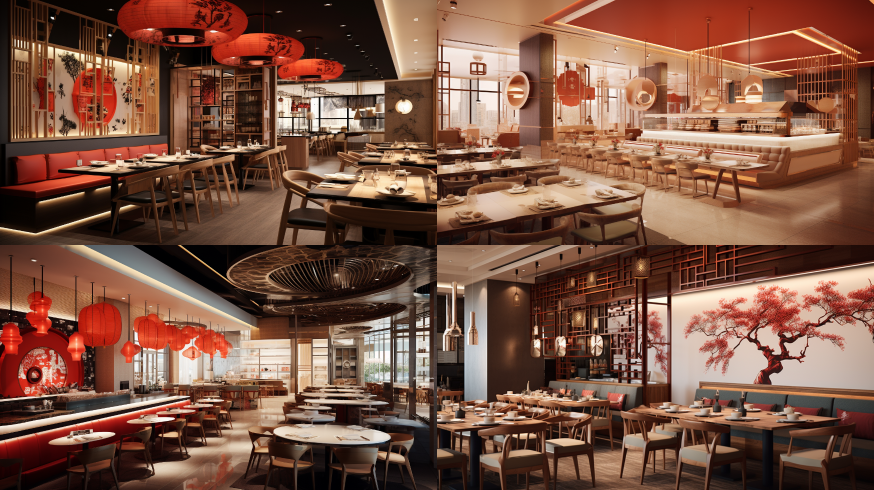 Midjourney Bot 更新时间:2023-08-30 10:26Chinese style fast food restaurant with modern interior design --ar 16:9 --style raw --v 5.2