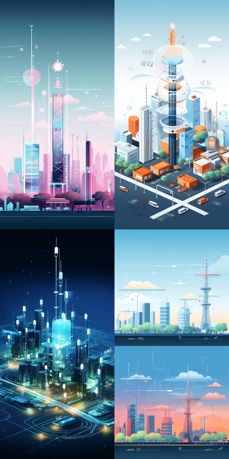 Midjourney Bot 更新时间:2023-08-30 10:315G base stations, signal coverage, urban landscape, eye level, light color theme. --ar 1:2 --style raw --v 5.2