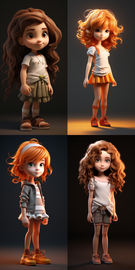 Midjourney Bot 更新时间:2023-08-30 10:23A little girl, c4d modeling, HD, pin hair, delete features, full body modeling, light and shadow --ar 1:2 --style raw --v 5.2