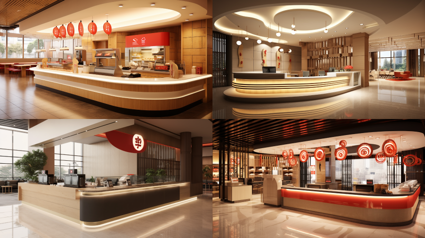 Midjourney Bot 更新时间:2023-08-30 10:24Fast food restaurant modern Chinese-style front desk --ar 16:9 --style raw --v 5.2