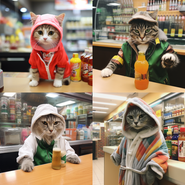 Midjourney Bot 更新时间:2023-08-30 10:07Cats wearing clothes, buying drinks at convenience stores, convenience stores, cats buying drinks --ar 1:1 --style raw --v 5.2