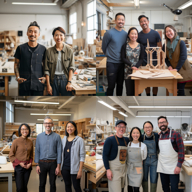 Midjourney Bot 更新时间:2023-08-30 10:06In the furniture design studio, three people take a group photo. On the left is a male Asian, in the middle is a male white , and on the right is a female white. In the middle shot, all three of them look at the camera with smiles. --ar 1:1 --style raw --v 5.2