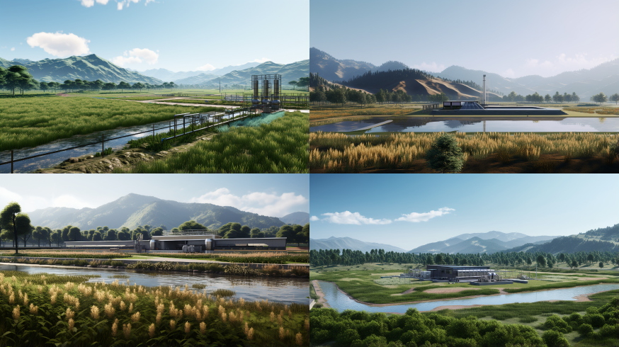 Midjourney Bot 更新时间:2023-08-30 09:59Huinanzhuang pump station, 3D modeling, surrounded by small saplings and distant mountains and fields --ar 16:9 --style raw --v 5.2