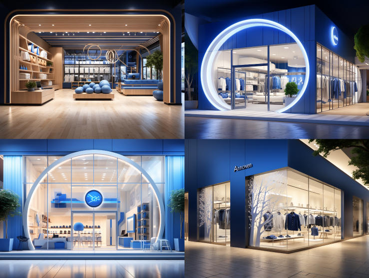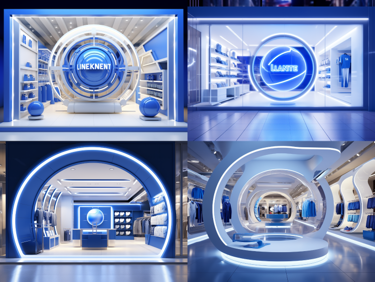 Midjourney Bot 更新时间:2023-08-30 09:47Long lens, concept kids clothing store front design, soft light, for clothing industry, metal plate, line light, simple display, blue outside and white inside, located in shopping mall, basketball sports theme, 4K, super detail, realistic,Arne Jacobsen --ar 4:3 --style raw --v 5.2 --s 250