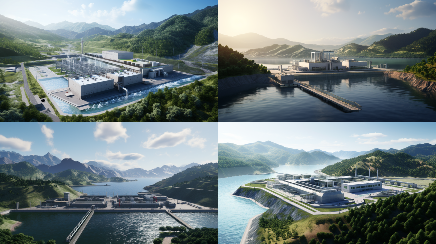 Midjourney Bot 更新时间:2023-08-30 09:46Huinanzhuang pump station, 3D exterior view, distant view, top view, distant green mountains and waters --ar 16:9 --style raw --v 5.2