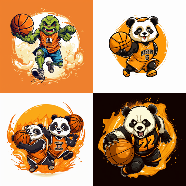 Midjourney Bot 更新时间:2023-08-30 09:38Design a logo for pandas playing basketball in the strong wind --ar 1:1 --style raw --v 5.2