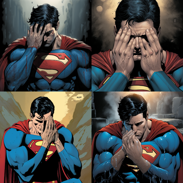Midjourney Bot 更新时间:2023-08-30 09:49Superman is shedding tears, a man's hand touches Superman's face --ar 1:1 --style raw --v 5.2