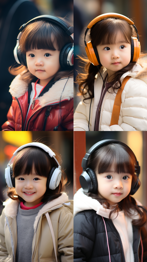 Midjourney Bot 更新时间:2023-08-30 09:47Chinese little girl, wearing headphones, very obedient --ar 9:16 --style raw --v 5.2