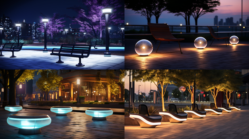Midjourney Bot 更新时间:2023-08-30 09:22Cyber style outdoor scene lighting fixtures and seats --ar 16:9 --style raw --v 5.2